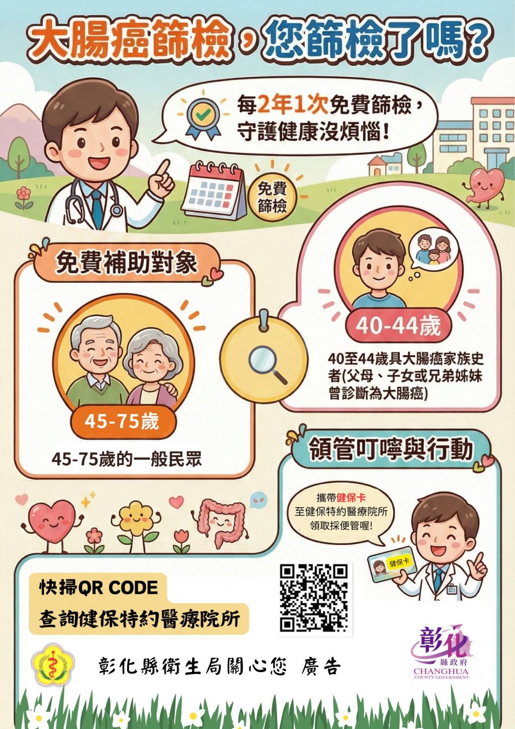 大腸癌篩檢兩年一次免費做,及早檢查守護健康!